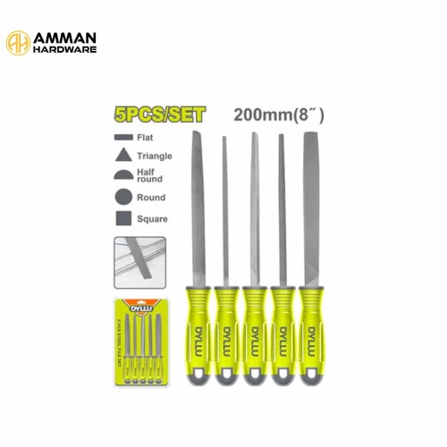 1 rectangular-headed file, 1 round-headed file, 1 triangular-headed file, 1 semicircular file, 1 flat-headed file.
