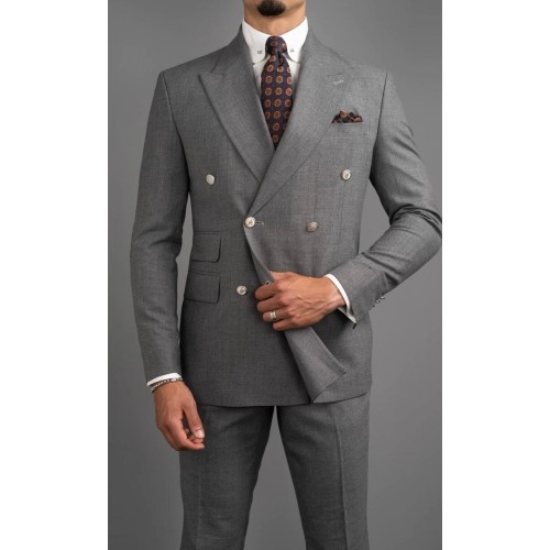 Double-breasted suit, jacket, pants, shirt, tie and Turkish handkerchief