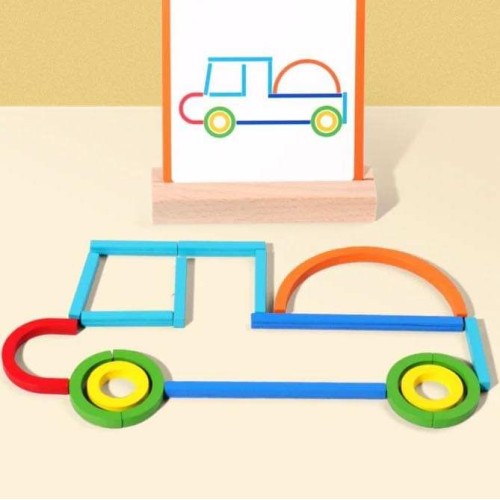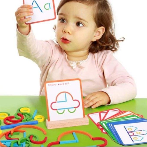 The game contains 120 pieces of sticks and a ring, 20 pieces of double-sided cards, 1 wooden base ×, 1 × storage bag. Build and make letters or patterns with colorful sticks and rings, such as animals, vehicles, and more. Children can try to figure out which pieces make designs on cards and create their own. The big science, technology, engineering and math building game will be a favorite game for kids.