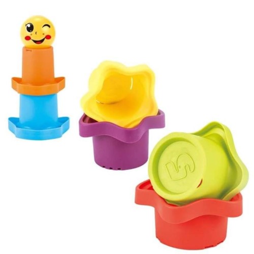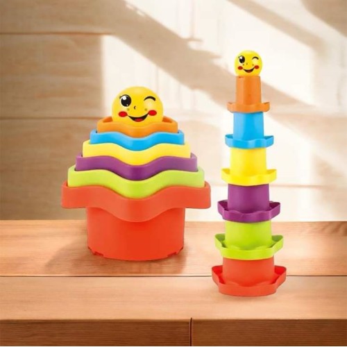 The toy consists of 10 plastic cups in different colors and attractive to the child