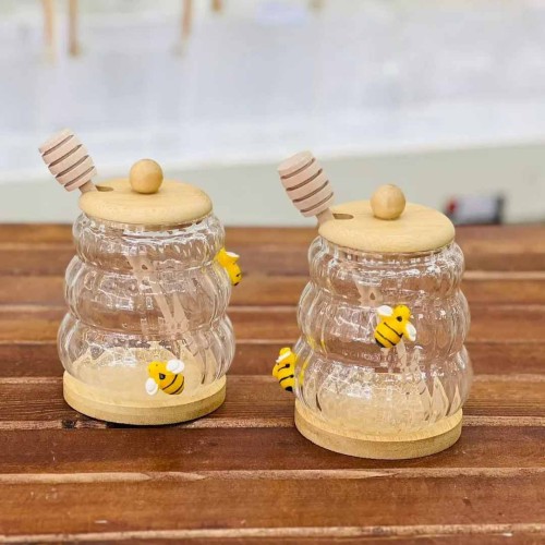 Elegant Glass Honey Jar with Wooden Spoon – Only 3 JD