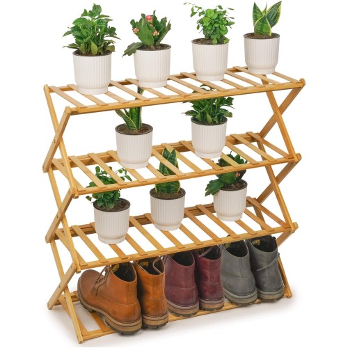 The 4-tier bamboo shelf can be used as a shoe or small plant holder organizer for the entryway or closet