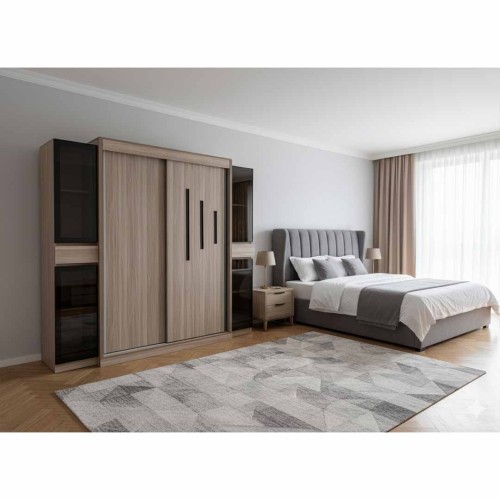 Includes: bed, 2 nightstands, sliding & swing door wardrobe, and a mattress of your choice (foam or spring)