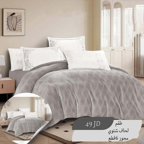 Transform your bedroom into a warm and elegant sanctuary with this luxury winter duvet set The duvet features a calm gray color and a modern wavy texture, perfect for providing warmth and comfort during cold winter nights.