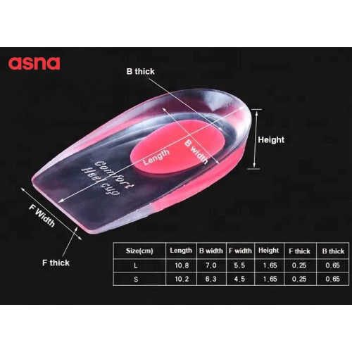 Silicone Heel Cup provide cushioning and support to the heels, they absorb shock and relieve pain and fatigue due to plantar fasciitis, tendonitis, heel spurs, long time walking or standing and sports. They fit in any shoes and available in two sizes making them suitable for men and women. Self-adhesive, they will not slide or move inside your shoes, and can be used for more than one shoes.