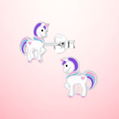 Elevate your child's style with silver earrings - full unicorn. Made of sterling silver, these gorgeous earrings capture the magic of a unicorn. Safe for sensitive ears and is the perfect accessory to add a touch of magic to any outfit.