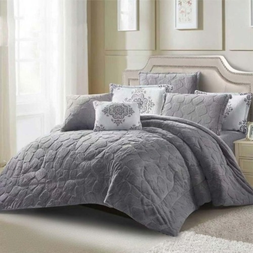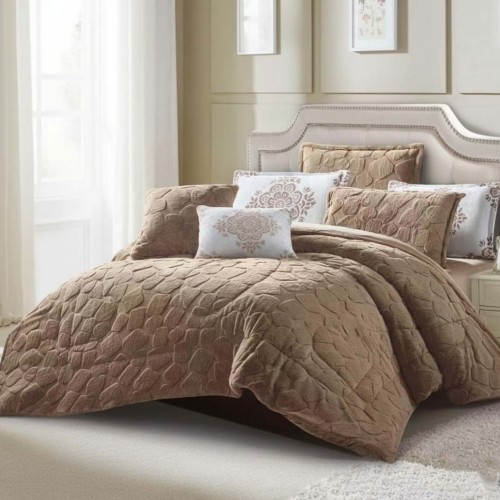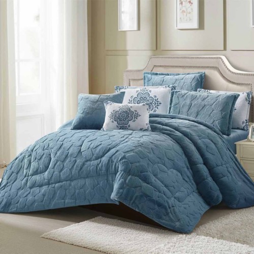 Luxurious winter bedding set featuring a soft, thick material that provides warmth and comfort on cold nights. The elegant blue color and decorative pillows add a stylish and cozy touch to your bedroom.