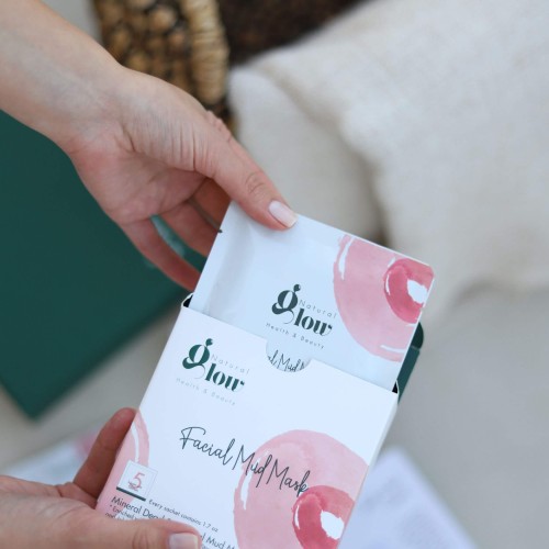 Natural Glow Facial Mud Mask mineral rich formula is a unique formula made with authentic Dead Sea Mud, universally known for its high quality salts and minerals that detox, purify the skin and bring out a new glowy appearance.