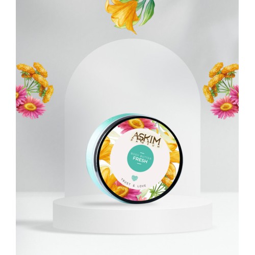 Fresh Body Butter is enriched with shea and cocoa butters, designed for long-lasting deep hydration and effective protection from dryness. It features a unique scent that opens with the fresh aromas of mandarin orange and pear, finishing with the warmth of musk and cedarwood, offering a refreshing experience that lasts all day.