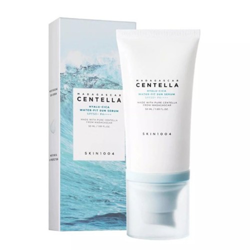 This website offers the Hyalu-Cica Water-Fit Sun Serum from the Korean brand SKIN1004. This innovative sunscreen features a lightweight, serum-like formula suitable for daily use.