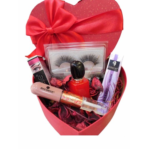 Emele mascara + Emele eyeliner + essence lipstick + eyelashes + perfume