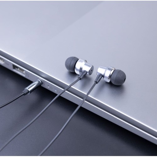 3.5mm wired headphone with elegant design and two colors, gold or black, made of aluminum, 120 cm long, and pure and clear sound.