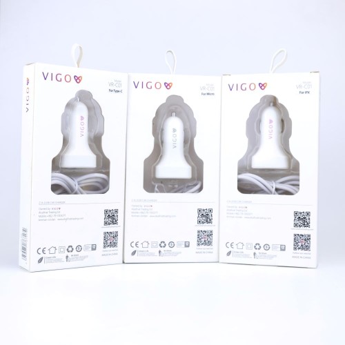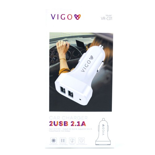 Dual USB car charger with 2.1A charging capacity (approximately 13W) made of heat-resistant materials with a charging cable that preserves the device's battery life.