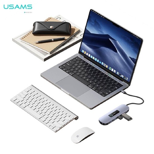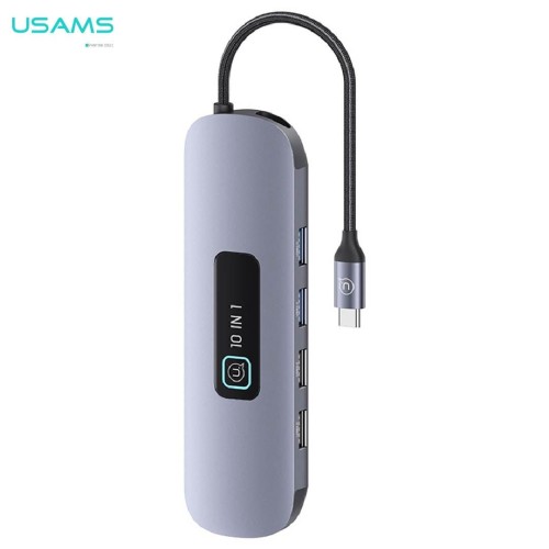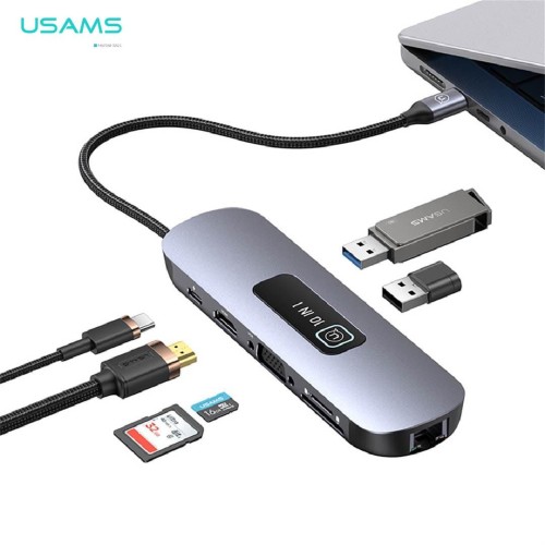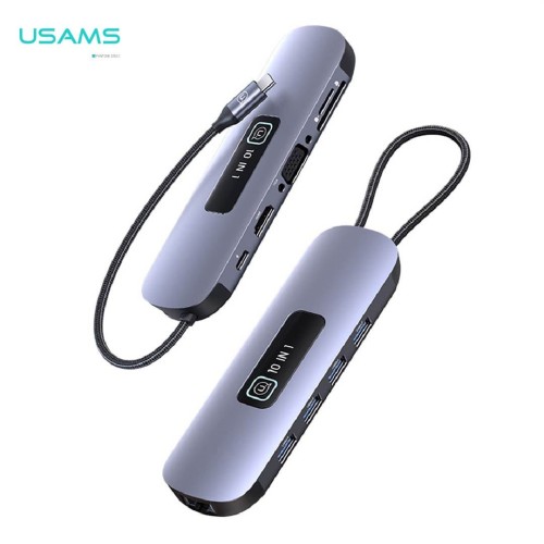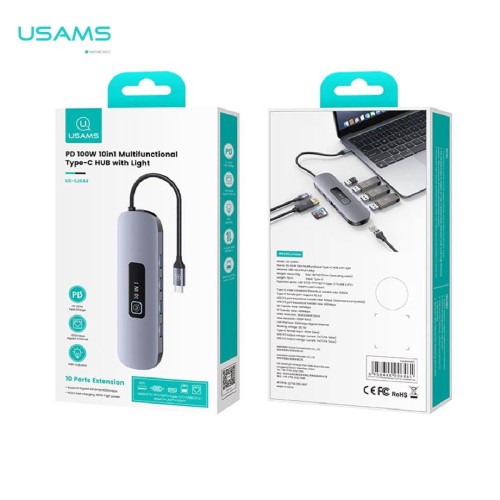 US-SJ644 PD100W 10in1 Multifunctional Type-C HUB with Light(Type-C To HDMI+USB3.0*2+USB2.0*2+VGA+TF+SD+RJ45+PD100W)