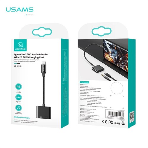 US-SJ598 AU15 Type-C to 3.5DC Audio Adapter With PD 60W Charging Port