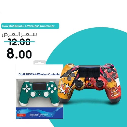 A stylish wireless controller for PlayStation 4, available in multiple designs including colorful graphics and teal-white finish. Features precise analog control, vibration feedback, and ergonomic grip.