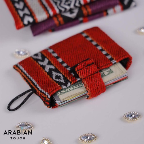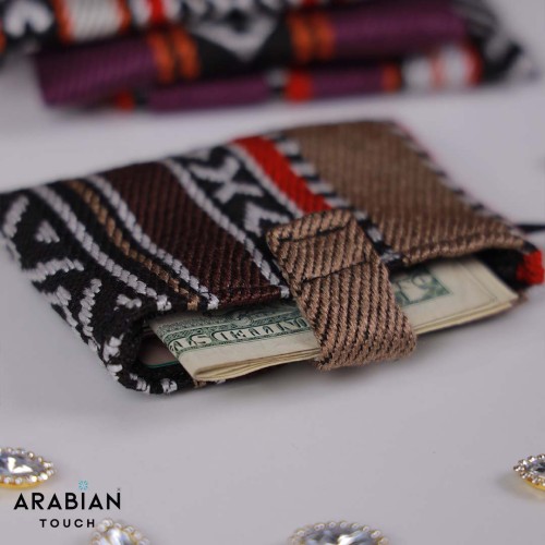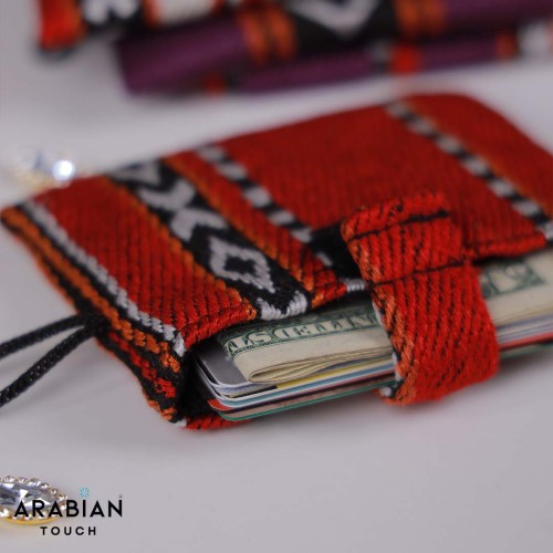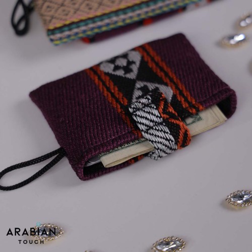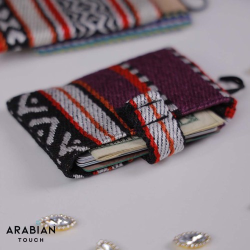 Compact and stylish mini pouch crafted from traditional Sadu fabric, offering a vibrant mix of rich colors and intricate woven patterns. Perfect for carrying cash, cards, or small keepsakes, it adds a touch of cultural charm to your everyday essentials.