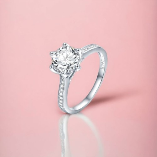 Crafted with precision and care, our silver Moissante ring is not just a piece of jewellery; it is a symbol of lasting elegance and elegance. The focal point of the ring is the stunning large Moissante, renowned for its brilliance and fire, offering a captivating alternative to traditional diamond jewellery.