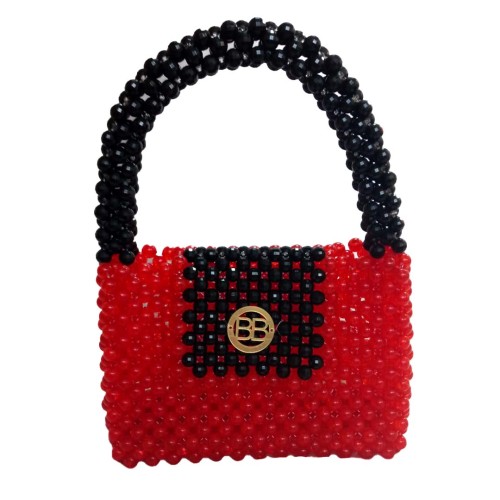 Make a statement with a modern design that blends the vibrant shine of red acrylic beads with classic black accents.