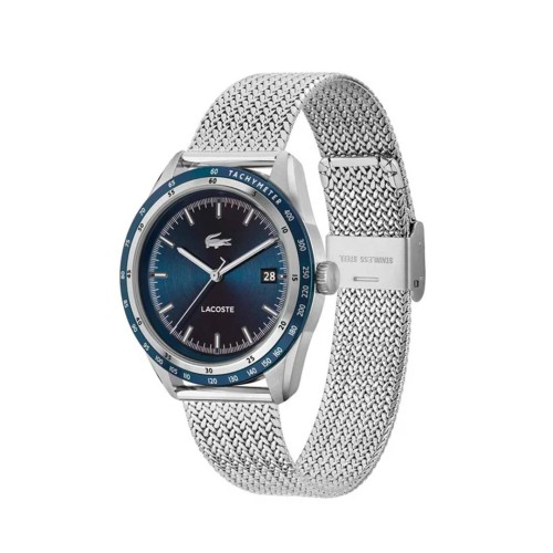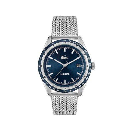 LACOSTE Men’s Watch – Silver Steel with Navy Blue