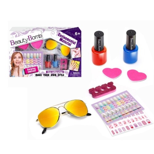 Beauty Bomb Kids Nail Kit; Environmental materials used; Includes trendy sunglasses