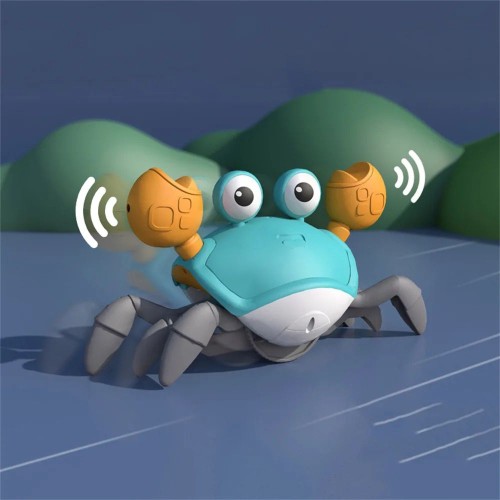 The dancing crab game moves in all directions. It has sensors. It does not hit anything like a chair or a table. It attracts the attention of the child and plays with it.