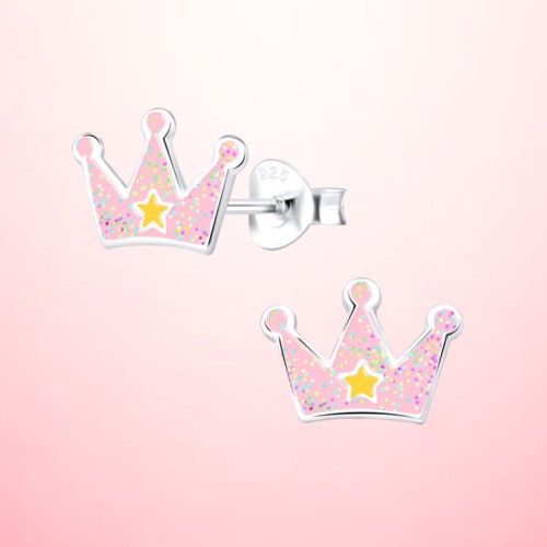 Silver Earrings For Kids - Pink Crown