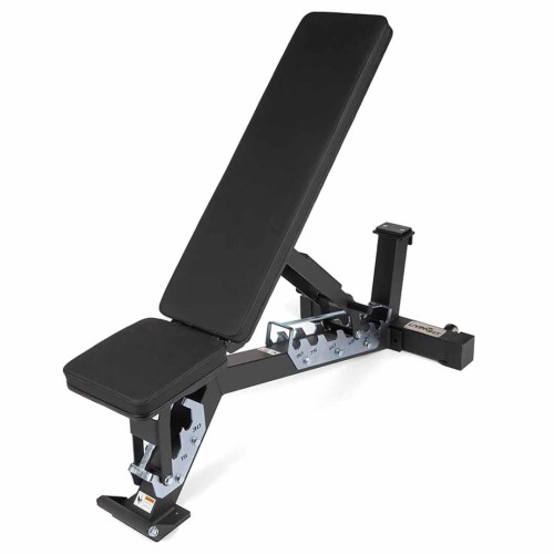 PROFESSIONAL GRADE: The Blackhawk Commercial Weight Bench is constructed from premium 3" x 3" 11 gauge steel and uses high-quality brass bushings in its moving parts, the standard for professional and competition benches. Featuring a 7-speed stainless steel ladder back and seat adjustment, this bench is built to meet the demands of a commercial gym.