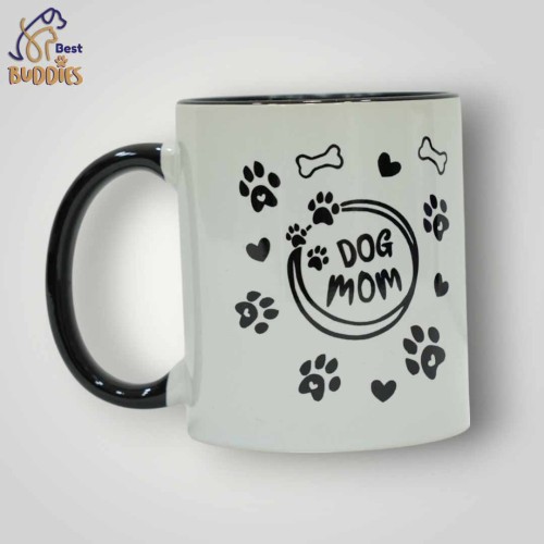 Dog Mom Ceramic Mug with Paw Print and Bone Designs