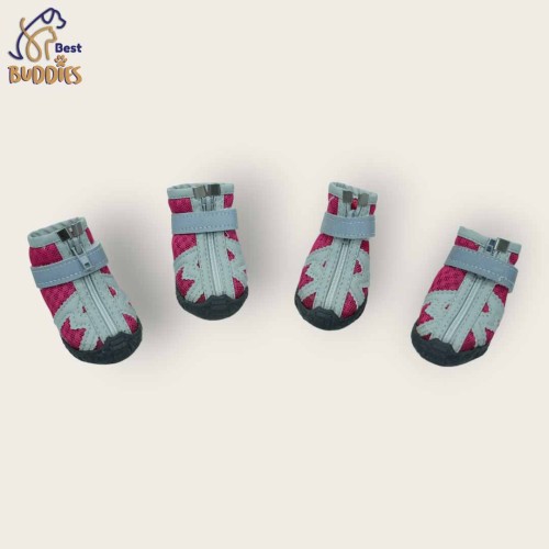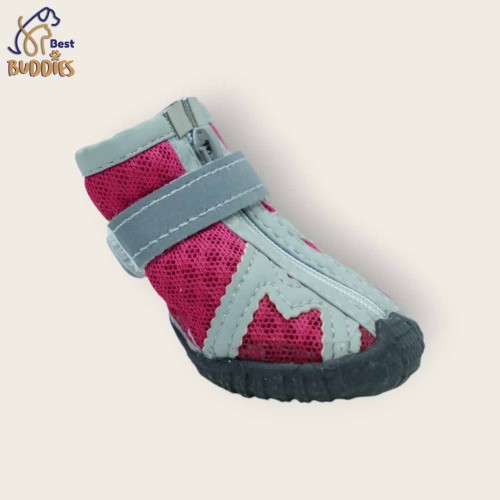 Sporty Red and Grey Dog Shoes with Zipper and Velcro Strap (Large)