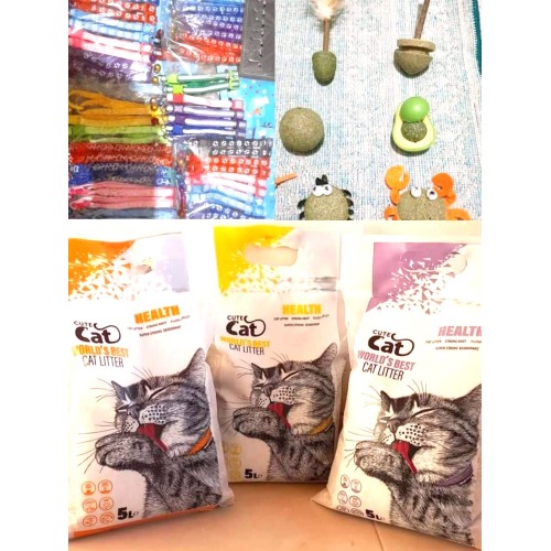 Consists of a piece of cat nab + 4 bags of sand + collar for the cat
