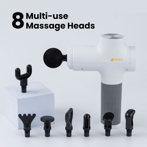 "Experience ultimate relaxation with the ARES iPower Gun Massager. Its powerful and versatile design targets muscles with deep tissue massage, offering relief after workouts or long days. Portable and rechargeable, it comes with various massage heads for customized comfort, making it your go-to solution for on-the-go relaxation.