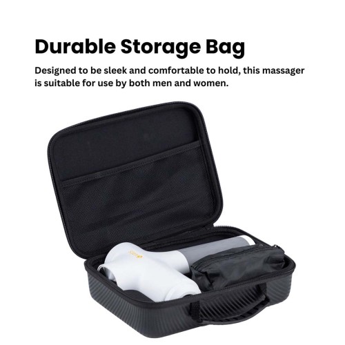 Included with the device is a durable and stylish storage bag, making it easy to transport and store the massager when not in use.