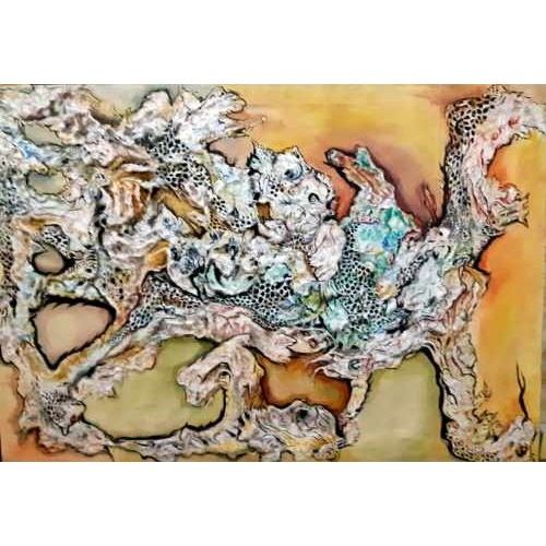 Abstract painting on canvas of different materials and colors, size 122*86 cm