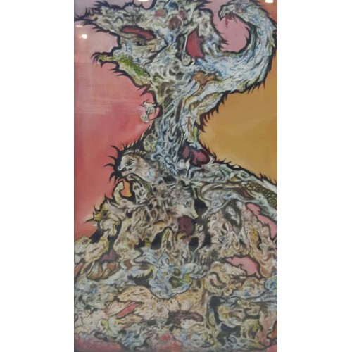 Abstract painting of the revolution with different materials and colors on canvas, 122*86 cm
