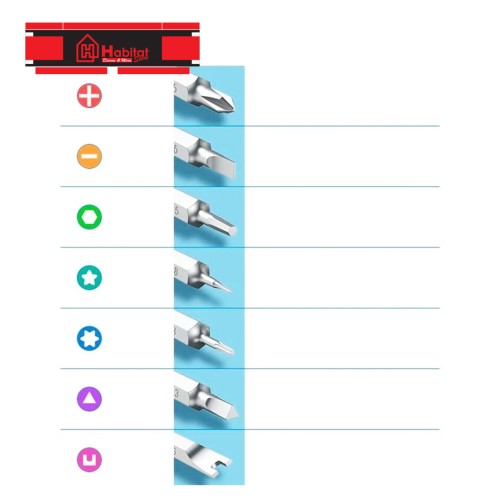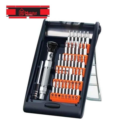 38 versatile pieces with various screwdriver heads for all types of tasks
