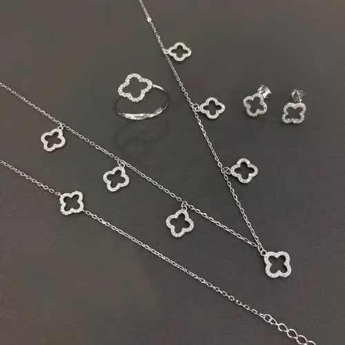 Will you find a unique piece that gives you a sense of strength and beauty like this? This distinctive silver set, which consists of a harmonious, elegant necklace, soft earrings, an elegant ring and a bracelet that makes you feel different when you wear it, will be the perfect choice, and will be admired by everyone who sees it.