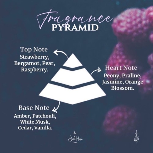 Created for the free and attractive woman, this eau de parfum reveals a complex blend: Intense base notes of amber, patchouli, white musk, cedar, vanilla that contrast with a fresh and light heart of peonies, praline, jasmine, and orange blossom. Like a teasing wink, a top note of strawberry, bergamot, pear, raspberry softens the initial impression. One perfume can hide another.