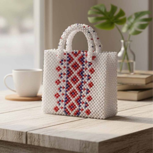 Handmade Beaded Bag Length: 24 cm Height: 21 cm Depth: 3.5 cm Price: 30 JOD