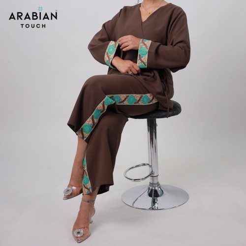 Brown Two-Piece Set with Vibrant Embroider